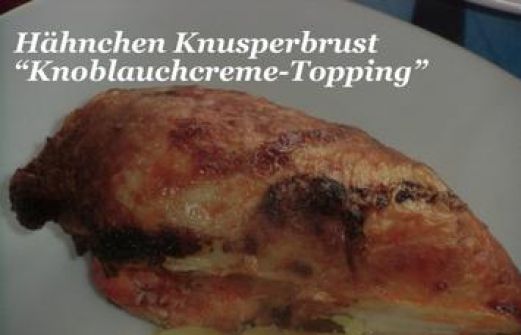 Zutaten für Personen Rezept mit Bild: Huhn : Hähnchen Knusperbrust "Knoblauchcreme-Topping" Bild einstellen Hähnchenbrust mit Haut und Knochen 550 Gramm Hähnchenbrust mit Haut Salatherzen als Salat 50 Gra [...]