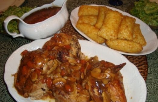 Zutaten für Personen Rezept mit Bild: Hauptgericht - Geflügel - Coq au Riesling Bild einstellen 1 Hähnchen ca.1,5 kg schwer Salz , Pfeffer 100 gr. Butter 4 Stk. Schalotten 150 gr. Champignons 0.25 l [...]