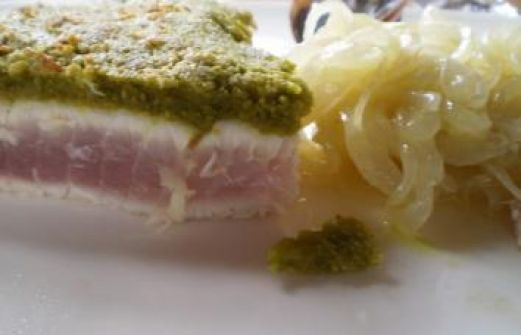 Zutaten für Personen Rezept mit Bild: Thunfisch mit Pistazienkruste und Wasabizwiebeln Bild einstellen 2 Scheiben weißer Thunfisch 2 EL Pistazienkerne, frisch im Blitzhacker zerhackt 2 EL Mie de Pain, frische We [...]