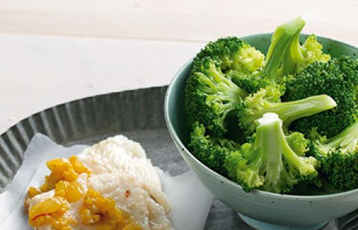 Fischfilet spanische Art mit Brokkoli Zutaten 1 große Zwiebel 2 Knoblauchzehen 2 EL Olivenöl 20 g Mandelstifte 100 ml Fischfond oder Gemüsebrühe 1 Döschen gemahlener Safran Salz Pfeffer aus der Mühle 500 g Brokkoli 300 g Seefischfilet (z. B. Dorade oder Scholle) 1 g [...]