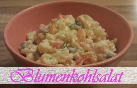 Zutaten: 1 frischer Blumenkohl 125g Kirschtomaten 1/2 Orangene Paprika ein paar Lauchzwiebeln 100g-150g Mayonnaise 100g Joghurt Gewürze: Salz, Pfeffer, Paprika Zubereitung: Blumenkohl waschen und in kleine Röschen schneiden. In einem großen Topf mit kochen [...]
