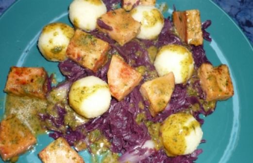 Zutaten für Personen Bild einstellen 1 Knödel halb + halb (im Kochbeutel) oder 6 Miniknödel (Pfanni) 1 Zwiebel 2 TL Öl 150 g Rotkohl aus dem Glas 100 g Kasseler 0.5 TL mittelscharfer Senf Salz und Pfeffer [...]