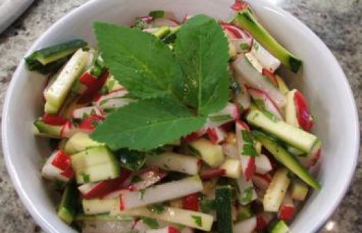 Zutaten für Personen Rezept mit Bild: Salate: Radieschen-Zucchini-Salat Bild einstellen 1 Bund Radieschen frisch 1 Stück Zucchino 1 Hand voll Giersch 1 TL Honig - hier Löwenzahnhonig - vegan - 2 Esslöf [...]