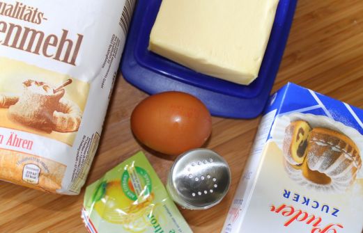 Mürbeteig 250 g gekühlte Butter 90 g Puderzucker Prise Salz etwas Zitronenaroma 1 Ei 350 g Mehl evtl. Mark einer 1/2 Vanilleschote 1. Butter, Puderzucker, Salz, Zitrone und ggf. Vanille miteinander glatt arbeiten. Das geht bei dieser kleinen Menge am besten von [...]