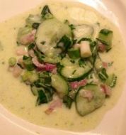 Zutaten für Personen Bild einstellen 2 Stk. Gurken 350 ml Buttermilch 1 EL Zucker 1 Msp Zimt 1 TL Salz weißer Pfeffer 2 TL (gestrichen) gehackter Dill evtl. ein Schuss heller Balsamico-Essig Reze [...]