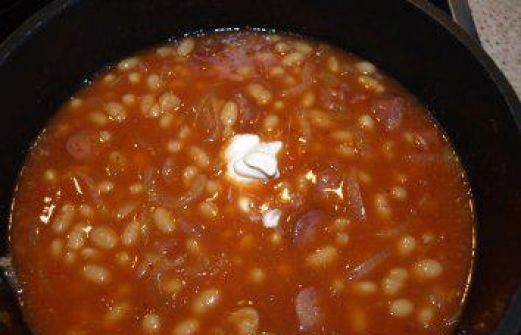 Zutaten für Personen Rezept mit Bild: Bohnensuppe pikant Bild einstellen 2 Dosen gebackene Bohnen 2 St Mettwürstchen 1 St Zwiebel Creme fraiche 1 TL Ajwar Salz, Pfeffer, Pul Biber [...]