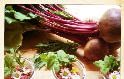 Rote Bete Couscous mit Wildkräutern & Blüten,