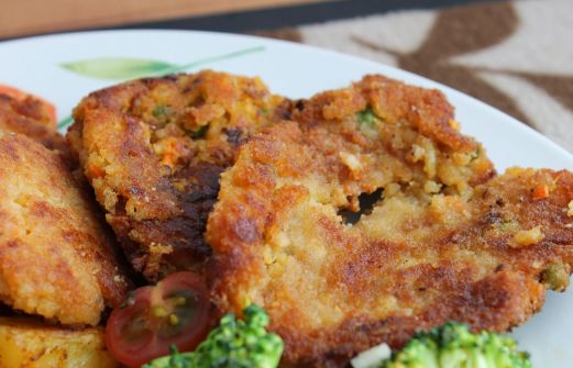 Kichererbsen-Reis-Bratlinge mit Gemüse