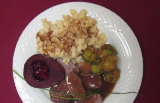 Zutaten für Personen Bild einstellen 1 Stk. Hirsch Rücken frisch 150 gr. Speck 1 Bund Suppengrün frisch 125 gr. Preiselbeerkompott 2 ½ Stk. Birnen frisch gegart 5 Stk. Wacholderbeere 2 Stk. Lorbeerblatt Gewürz [...]