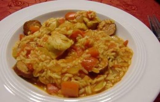 Zutaten für Personen Rezept mit Bild: Hähnchen-Reis-Pfanne mit Schinkenwürstchen Bild einstellen 500 g Hähnchenbrust 500 g Paprika 4 Zwiebeln 2 Dose Tomaten geschält 3 Schinkenwürste 2 Lo [...]