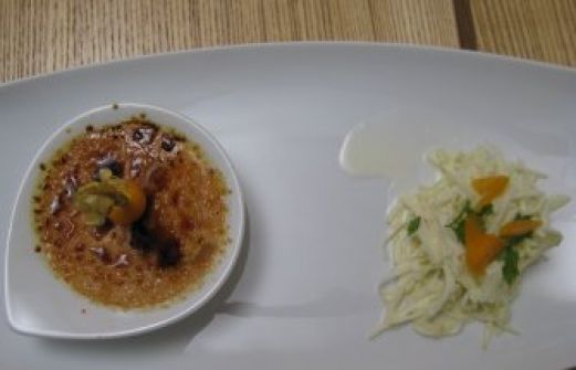 Zutaten für Personen Bild einstellen Crème brûlée: 120 ml Geflügelfond 100 ml Süßwein-Reduktion 240 gr. Gänseleberterrine 2 Stk. Eier 2 Stk. Eigelb 230 ml Sahne Salat: 1 Stk. Apfel 0.5 Stk. Knollenselle [...]