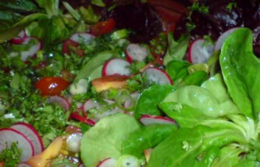 Zutaten für Personen Rezept mit Bild: Bunter Salat Bild einstellen 1 Kopf Lollo Rosso 1 Kästchen Rapunzel bzw. Feldsalat 1 Bund Radieschen 1 kleines Kästchen Mini Tomaten Lauchzwiebeln [...]
