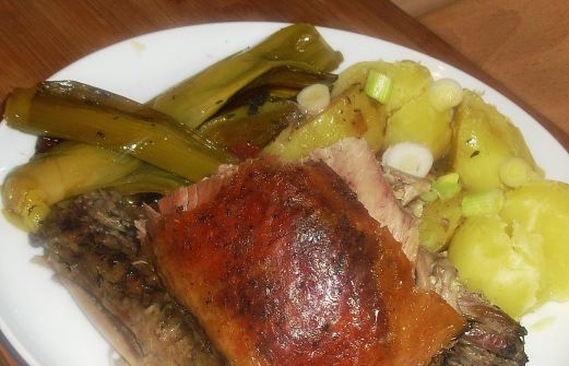 Dazu Porree, den ich kurz vor Ende der Bratzeit in der Soße mit garte. Bekam dadurch einen guten Geschmack. Für 2 Personen 1 Barbarie-Ente aus Freilandhaltung 1800 G 1 grosse Zwiebel frisch 1 Rispen-Tomate 2 gro [...]