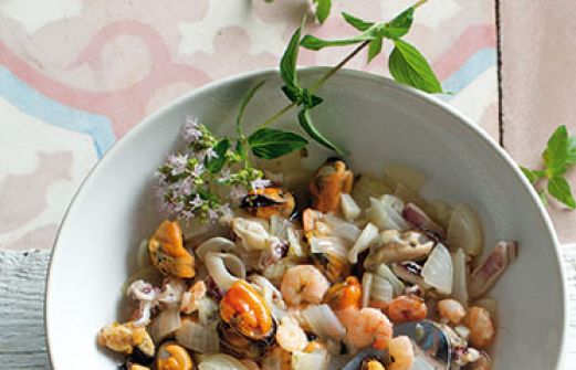 Meeresfrüchte mit Auberginenpüree Zutaten 1 große Aubergine (ca. 400 g) 174 l Gemüsebrühe 3 EL Olivenöl Salz Pfeffer aus der Mühle Zimtpulver 2 Zwiebeln 1 Knoblauchzehe 350 g gemischte Meeresfrüchte (TK) 1/8 l trockener Rotwein oder Fischfond 1 TL getrockneter Majoran [...]