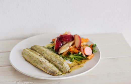 Den Hering langsam (am besten im Kühlschrank über Nacht, damit er nicht so viel Wasser verliert) auftauen lassen, falls er TK ist, dann einfach mit etwas geschmolzener Korianderghee übergiessen (oder Ghee/Kokosöl mit Kräutern mischen und drübergeben), etwas salzen und kurz unter den Backofengri [...]