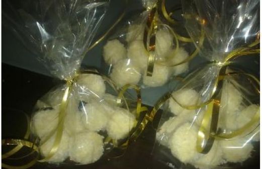 Zutaten für ca. 90 Portionen 200 g Puderzucker 4 Pck. Vanillezucker 200 g Butter 600 g Schokolade, weiß (gerieben) 8 EL Rum 8 EL Orangensaft 350 g Kokosraspel 1 Pck. Mandel(n), (ganz & geschält) Zubereitung Puderucker, Vanillezucker, Butter kneten, geriebene weiße [...]