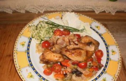 Zutaten für Personen Rezept mit Bild: Hähnchen komplett Bild einstellen 8 Stück Hähnchenkeule mit Rückenstück 4 Stck Zwiebel 1 Hand voll Cherrytomaten Rispe 1 Scheibe Ingwer 2 Stck. Knoblauch fris [...]