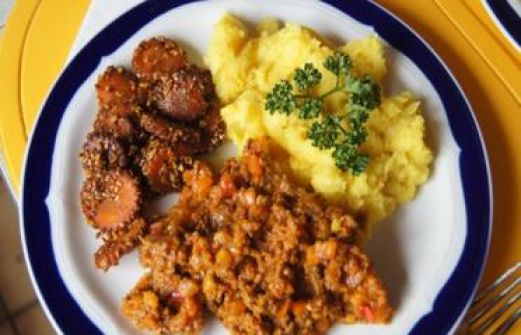 Zutaten für Personen Rezept mit Bild: Bolognese à la Papa mit Sellerie-Kartoffelstampf und asiatischen Möhrenblüten Bild einstellen Bolognese à la Papa: ( Für 3 - 4 Personen ) 200 g Rindermett 1 M [...]