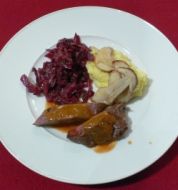 Rehrücken, Steinpilze, Senffrüchte und Topinambur-Gratin Zutaten 400 g Rehrücken, ausgelöst und ohne Knochen Olivenöl Fleur de sel 3 Tl Wildgewürz 2 El Butter ---------- --- für die Sauce: 100 ml Portwein 100 ml Rotwein 160 ml Wildfond 2 El Senffrüchte-Sirup 25 g kalte Butter [...]