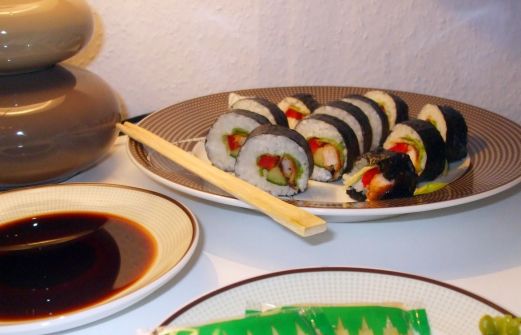 Gestern habe ich zum ersten Mal mit meinen Mädels zusammen Sushi gemacht. Allerdings in einer nicht ganz so rohen Variante ^^. Gefüllt sind unsere Rollen mit Gurke, Paprika (anstelle von Avocado), Salatblatt und gebratenen panierten Garnelen. Super lecker! Allerdings haben wir zu viel Reis ve [...]