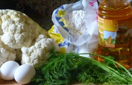 Ein warmer Snack, der in Ägypten meistens zum Abendessen serviert wird: Fladenbrot, etwas weißer Käse, ein paar Scheiben Gurken und Tomaten und dazu der warme frittierte Blumenkohl. Das ist ein ägyptisches Abendessen, was man z.B. Besuch servieren könnte.