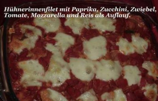 Zutaten für Personen Rezept mit Bild: Huhn : Resteauflauf mit Hühnerinnenfilet, Paprika, Zucchini, Tomate, Zwiebel, Mozzarella Bild einstellen Resteauflauf Hühnerinnenfilet 400 Gramm Hühnerfilet 2 Stück Papr [...]