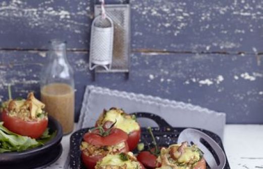 Gefüllte Tomaten mit Pfifferlingen Zutaten Salz 125 g Bulgur 250 g Pfifferlinge 1 Frühlingszwiebel 1 Knoblauchzehe 100 g mittelalter Gouda 8 große Tomaten 6 EL Olivenöl 2 EL Aceto balsamico bianco 2 TL Dijon-Senf Cayennepfeffer 1 Prise Vollrohrzucker 6 EL gehackte Pe [...]