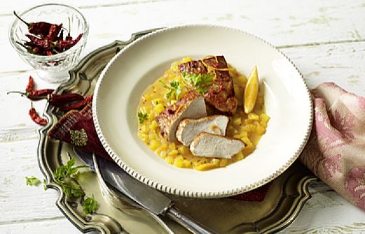 für 4 Personen 4 Stk Putenbruststeaks 150 g Sahnejoghurt 1 EL Tandoori-Paste 1 EL Sonnenblumenöl 1 TL Honig 1 Stk Mango 1 Stk Zwiebel 20 g Ingwer 1 Stk kleine, rote Chili 80 g Gelierzucker 3:1 200 ml trockener Weißwein 2 Stk Orangen 3-4 Zweige Estragon Salz und Pfeffer aus der Mühle [...]