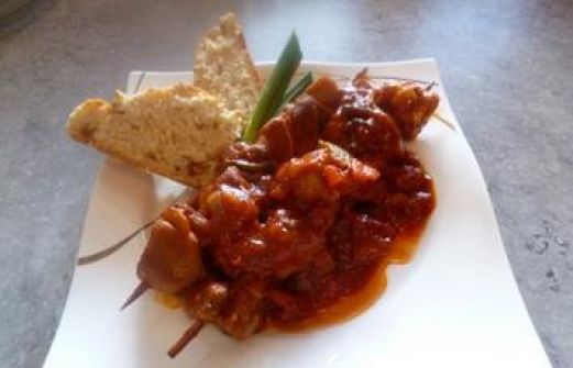 Zutaten für Personen Rezept mit Bild: Schaschlik Bild einstellen Rindfleisch und/oder Schweinefleisch - 5 Würfel pro Spieß 1 - 2 Paprika grün und gelb 4 weiße Zwiebeln 2 rote Zwiebeln Cayennepfeffer u [...]