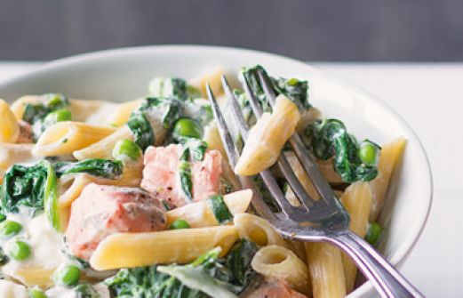 Grüne Lachs-Pasta mit Mozzarella Zutaten 500 g Lachsfilet (ohne Haut) 1/2 Bio-Zitrone Salz Pfeffer 300 g Vollkorn-Penne 300 g junger Blattspinat (oder 250 g TK-Blattspinat) 250 g TK-Erbsen 200 g Frischkäse 125 g Mozzarellakugeln 500 g Lachsfilet (ohne Haut) , [...]