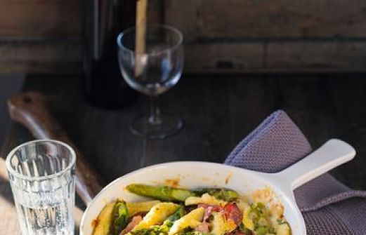 Spätzle mit Spargel Zutaten 200 g Mehl Salz 4 Eier 500 g grüner Spargel 200 g gekochter Schinken 1 Handvoll Kerbel oder 1 Bund Schnittlauch 100 g TK-Erbsen Pfeffer ½ TL rosenscharfes Paprikapulver 150 g Sahne 150 g mittelalter Bergkäse 1 EL Butter Butter für die Fo [...]