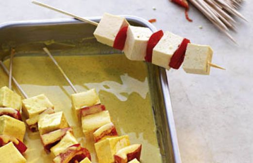 Tandoori-Tofu-Spiesschen mit Paprika Zutaten 200 g Tofu 1 große rote Paprikaschote 1 Stück frischer Ingwer (ca. 1 cm) 1 Ei (Größe S) 3 EL Joghurt (3,5 % Fett) 2 EL Kichererbsenmehl 1 Msp. gemahlener Safran 1 TL Garam Masala 1/4 TL Chilipulver 2 Msp. Kurkumapulver Salz Pfef [...]