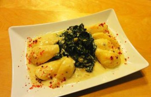 Zutaten für Personen Rezept mit Bild: Birnen in würziger Käsesoße an Blattspinat Bild einstellen 10 g Butterschmalz 500 g Spinat 1 Stück Zwiebel 2 Stück Knoblauchzehe 75 ml Brühe 280 g Birne frisch [...]