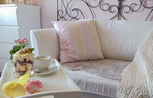 Mmhh, leckerer Vanillequark mit roten Früchten! Das ist genau das, was ich jetzt brauche! :0) Dazu ein Cappuccino! Perfekt! Eigentlich viel zu viel für mich! Wer möchte auch? Ihr kriegt auch das Marzipanschäfchen! Liebste Grüße Kerstin
