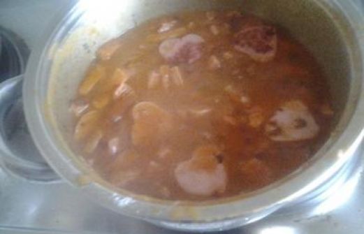Zutaten für Personen Bild einstellen 250 g Fleischwurst 150 g geräucherten Schweinebauch 1 Stck große Zwiebel 500 ml Brühe 2 EL Ketchup 25 g Butter 1 EL Mehl Salz, Pfeffer, Thymian .Ingwer, evlChilli [...]