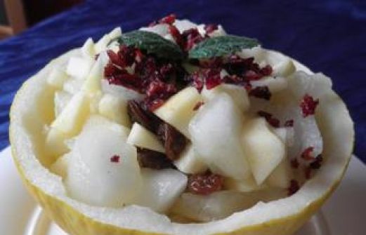 Zutaten für Personen Rezept mit Bild: Melonensalat Bild einstellen 1 kleine Melone 200 Gramm Äpfel 50 Gramm Sultaninen 2 Centiliter Weinbrand 100 Milliliter Sekt 0.5 Zitrone 1 Eßlöffel Zucker [...]