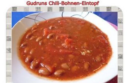 Zutaten für Personen Rezept mit Bild: Eintopf: Chili-Bohnen-Eintopf Bild einstellen 1 kleine Dose geschälte Tomaten 1 Dose Chilibohnen von EDEKA Hühnerbrühe/-bouillon gekörnt 1 Zehe Knoblauch, gepresst [...]