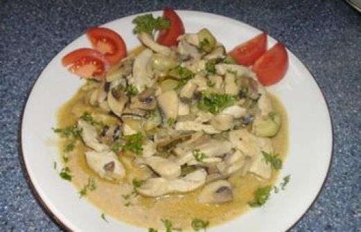 Zutaten für Personen Rezept mit Bild: Hähnchengeschnetzeltes nach Züricher Art ...mit Zucchini Bild einstellen 300 gr. Champignons 2 EL Zitronensaft 1 Zwiebel gehackt 1 EL Öl 400 gr. Hähnchenbrustfilet i [...]