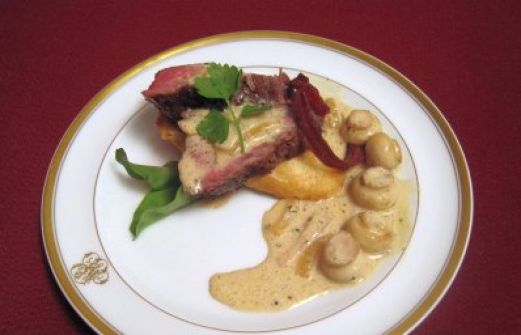 Zutaten für Personen Bild einstellen 500 gr. Springbock Rücken 6 Stk. Speck 1 l Sonnenblumenöl 1 EL Olivenöl 1 EL Butter 0.5 Stk. Zwiebel 250 gr. Champignons 250 gr. Sahne 0.5 Stk. Zitrone 1 Stk. Baguette [...]