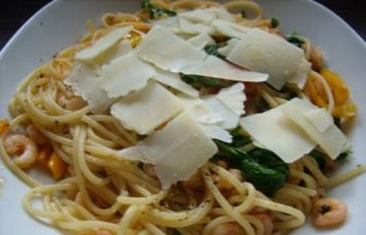 Zutaten für Personen Rezept mit Bild: Spaghetti mit Garnelen und Rucola Bild einstellen 180 g Spaghetti 200 g Eismeergarnelen oder Flusskrebse 4 Cocktailtomaten 1 Paprika gelb Salz, Pfeffer, Chili [...]