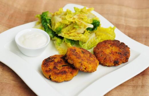 Ich liebe Gemüselaibchen. Sehr gerne esse ich sie auch in Form eines Burgers, mit selbst gemachten Burger Buns. Da diese aber doch viel Zeit zur Zubereitung benötigen, gibt's die Laibchen auch oft ohne Bun einfach mit Salat und Dip. Auch so sind sie lecker.