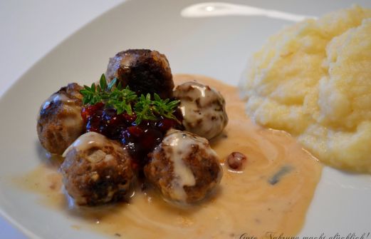 Die typischen schwedischen Hackbällchen. Also ich muss gestehen, dass ich mich ständig im schwedischen Möbelhaus aufhalte (typisch Frau), aber noch niemals die Hackbällchen dort gegessen habe. Da ich aber nicht vorhabe, die dort jemals zu probieren, wurde es doch höchste Zeit, dass die Hackbäll [...]