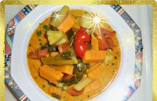 450 g Süßkartoffel - 2 Bund Frühlingszwiebel 2 rote Paprika - 1/2 Ananas 1 Bund Coriandergrün - 1 rote Chilischote 2 EL neutrales Öl - 1/2 L O-saft 2 -3 EL rote Thai - Currypas [...]