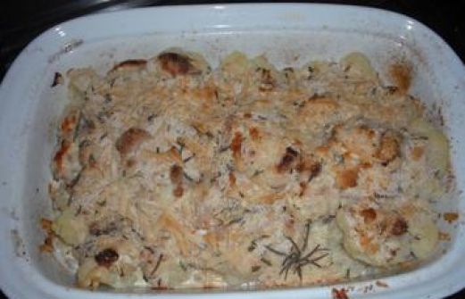 Zutaten für Personen Bild einstellen 1 großen Blumenkohl 2 Zweige Rosmarin frisch 1 Prise Meersalz 4 eingelegte Sardellenfilets 400 g Crème fraîche 200 g Cheddarkäse Salz und Pfeffer 1 Schuss Olivenöl 4 Schei [...]