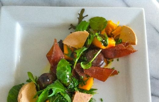 Wildkräutersalat - Melone - Bündner Fleisch - Zwiebelchen Zutaten 100 g Wildkräutersalat 1/2 Cantaloupe-Melone 24 Scheiben Bündner Fleisch (oder geräucherte Entenbrust) 6 Scheiben Foie gras de canard (200 g) 12 Balsamico-Zwiebelchen (Cipolle Borettane) 6 El Schnittlauchröllchen ---- [...]