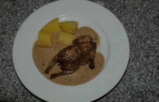 Zutaten für Personen Rezept mit Bild: Wachteln mit Estragon- Creme fraiche -Soße Bild einstellen 4 Stk. Wachteln 100 gr. Rosinen 1 halbes Bund Estragon frisch gehackt 250 gr. Crème fraîche 25 gr. But [...]