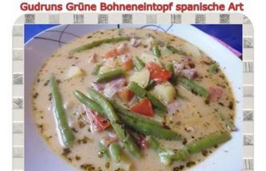 Zutaten für Personen Rezept mit Bild: Eintopf: Bohneneintopf auf spanische Art Bild einstellen Das Gemüse: 2 handvoll Grüne Bohnen ca. 190 Gr. 2 mittelgroße Kartoffeln, gewürfelt 1 große Strau [...]