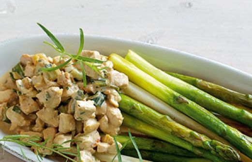 Gebratener Spargel mit Hähnchensauce Zutaten 400 g grüner Spargel 400 g zarter weißer Spargel 2 EL Butter Salz Pfeffer aus der Mühle 300 g Hähnchenbrustfilet 1/2 Bund Frühlingszwiebeln 4 Zweige Estragon 2 EL gemahlene Mandeln 150 ml Gemüse- oder Hühnerbrühe 1 EL Schmand [...]