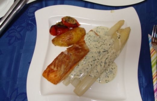 Zutaten für Personen Rezept mit Bild: Lachs mit Spargel und Senf-Dill-Soße Bild einstellen 4 Stk. Lachsfilet 1 ½ kg Spargel frisch Mehl zum bestäuben des Lachses Für die Soße Öl zum Anbraten [...]