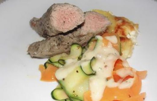 Zutaten für Personen Rezept mit Bild: Lammlachse - Gemüsestreifen an Kartoffel Vinaigrette mit überbackenen Kartoffeln Bild einstellen Das Fleisch 6 Stück Lammlachse 2 Esslöffel Öl 1 Teelöffel Pfeffe [...]